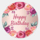 Pegatina Redonda Rosa floral de cumpleaños oro rubor rosa morado