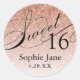 Pegatina Redonda Rosa Glam Glitter Cumpleaños 16 Personalizado