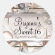 Pegatina Redonda Rosa Globos rosados y Purpurinas de oro Dulce 16 F