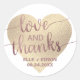 Estos rosas de oro gracias a usted pegatinas de la boda son perfectos para un boda moderno. El diseño presenta una hermosa caligrafía moderna de Relieve metalizado de oro falso rosa con un fondo de corazón dorado de champán. Personalice las etiquetas del pegatina con el nombre de la novia y el novio y la fecha del boda. Nota: Este diseño no tiene Relieve metalizado de oro rosa real. Es un gráfico de alta calidad hecho para que parezca oro rosa sucio.