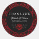 El boda gótico Gracias pegatina está diseñado para ser elegante y misterioso.El diseño tiene damasco rojo y negro y un rosa de sangrado rojo. El tipo de letra está en un tono gris delicado, casi blanco, que contrasta con el fondo oscuro. Puede personalizarlo fácilmente haciendo clic en el botón de personalización.