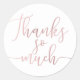 Pegatina Redonda Rosa Guión Relieve metalizado dorado Gracias Mucha