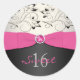 Pegatina Redonda Rosa, negro y plata dulce dieciséis Pegatinas