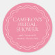 Perfecto para celebraciones de boda al aire libre en primavera o verano en un jardín, este diseño elegante presenta un borde ondulado de concha en un fondo rosa brillante. Personalice estas pegatinas de boda con el nombre de su evento, la fecha y el año.