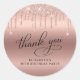 pegatina de moda para la correspondencia de su fiesta de 50 años y favores de fiesta con "Gracias" en un elegante guión de caligrafía, un rosa de fondo de Relieve metalizado falso de oro y rosa purpurina de imitación de oro.