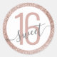 Rosa Purpurina de oro oscuro círculo redondo rosa y gris "dulce 16" pegatina de cumpleaños para sobres y favores, perfecto para una elegante y moderna fiesta de cumpleaños, dulces dieciséis y 16º cumpleaños. La ilustración es una imagen impresa de un purpurina - no se utiliza ningún purpurina real. Visite la tienda de Papel Grape Zazzle para coordinar artículos de fiesta, papelería e invitaciones.