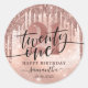Pegatina Redonda Rosa Purpurina y Relieve metalizado 21º cumpleaños