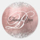 Un boda de caligrafía de guion elegante gracias pegatina envuelve sellos con un falso rosa brillante Relieve metalizado de oro y un falso purpurina de plata brillante. Añade tu inicial para crear tu propio boda gracias pegatinas con el monograma de la pareja en un estilo clásico de escritura de caligrafía sofisticada. Este tipo de letra es tan fabulosamente decorativa que algunas letras necesitan ser movidas. Puede personalizar los colores blanco y negro para que coincidan con la paleta de colores bodas. El falso Relieve metalizado y purpurina de oro brillante y rosado de color rosado se crea con gráficos digitales impresos.