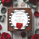 Pegatina Redonda Rosa roja en Boda de franjas blanco y negro