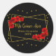 Pegatina Redonda Rosa Roja Negro y Quinceañera de oro