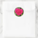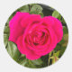 Un Sticker Redondo Personalizado, con una imagen de una Hermosa Rosa Rosa, en él.