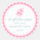 Un pegatina encantador con un ramo de rosa rosado y abstracto. Las palabras "Gracias" recorren el fondo rosado y caprichoso de vieiras. El texto de ejemplo dice "¡Un regalo para usted-con amor" con su nombre y fecha de evento! Personalizar todo el texto y el color de la fuente! Perfecto para regalos para novias o para bebés. CONSEJO: CUANDO SE CAMBIA EL TAMAÑO DEL PRODUCTO O EL TEXTO Y LA IMAGEN DE AJUSTE DE ESTILO PARA QUE SE AJUSTEN DENTRO DE LA LÍNEA DOTADA ROJA.