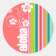 Pegatina Redonda Rosa salmón y verde marino a rayas: Aloha