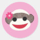 Pegatina Redonda Rosa Sock Monkey Flower Girl