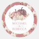 Pegatina Redonda Rosa turbio Boda de calabaza floral rosa