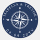 Pegatinas de citas de bodas personalizadas de color marino adaptadas a un boda náutico.