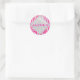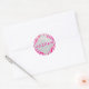 Pegatina Redonda Rosa y blanco caluroso de cebra con monograma