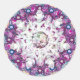 Pegatina Redonda Rosada roja cardinal y copo de nieve