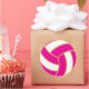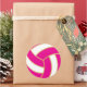 Pegatina Redonda Rosado caliente, oro y voleibol blanco