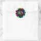 Pegatina Redonda Rosas arcoiris Boda floral vibrante blanco y negro