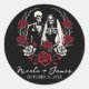 Pegatina Redonda Rosas blancas rojas y negras esqueleto boda de par