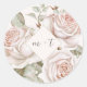 Bonito Rubor Watercolor Rosas Floral Bouquet con el Pegatina de Novia y Monograma de Groom.