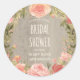 Pegatina Redonda Rosas de época y madera rústica | Ducha nupcial fl