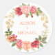 Romántico y elegante pegatina boda floral con bonito polvorienta rosa floral flor floral flor correa y guijarros de guijarros con letras sobre fondo blanco. Tenga en cuenta que el color de fondo es modificable. Puede cambiarlo, así como el color de la letra, después de seleccionar el botón PERSONALIZAR. Ideal para una boda de verano o otoño al aire libre.