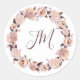 Pegatina Redonda Rosas de Rubor Boda de monograma de floral Wreath