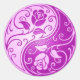 Este hermoso diseño de yin yang cuenta con dos estilizados rosas tribales. Unos torbellinos púrpuras intrincados decoran los dos lados de este símbolo tradicional creando un patrón delicado. Las dos flores fluyen desde el fondo de la lágrima a ambos lados, con hojas que crecen de los tallos. Este yin yang único hace un diseño pegatina impresionante y elegante.