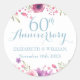 Pegatina Redonda Rosas en acuarela del 60º aniversario de diamante