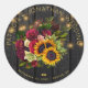 Pegatina Redonda Rosas girasoles y burdeos boda de madera rústica
