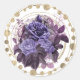 Rosas morados góticos oscuros y morados con círculos dorados abstractos y polvorientos sobre un fondo blanco.
