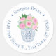 Este diseño de pegatina flexible presenta un jarrón de jengibre azul marino y blanco lleno de rosas rosadas y vegetación, con borde de texto circular. Se muestra aquí para una etiqueta de dirección de devolución, pero todos los campos de texto son flexibles según tus necesidades, por ejemplo, podría ser una pegatina de agradecimiento.