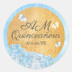 Pegatina Redonda Rosas Mariposas Azules Elegantes de Oro Quinceañer