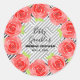 Pegatina Redonda Rosas rojas en franjas blancas negras Fiesta derby