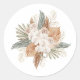 Los rosas tropicales y el diseño de pasto pampas en pegatinas redondos clásicos son geniales para el boda o guardar los sobres de fecha, giftbags, y más!