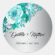 Pegatina Redonda Rosas turquesas en Boda plateado