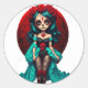 Pegatina Redonda Rosas verde azuladas y rojas Calaveras azucareras
