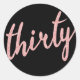Pegatina Redonda Rose Gold Black 30 Birthday Party Glitter "Thirty"