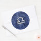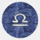 Pegatina Redonda Rótulo Libra Zodiac en camuflaje digital azul