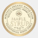 MAPLE SYRUP está escrito en una fuente de oro metálico cincelada. El texto está impreso en letra. Personalice con su nombre comercial de arce, dirección y descripción de jarabe (local, orgánico, etc.). Incluya también su volumen de jarabe. Editar el logotipo circular con la hoja de arce de azúcar con el tipo de jarabe - ámbar, dorado, oscuro, etc.)