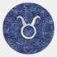 Pegatina Redonda Rótulo Taurus Zodiac en camuflaje digital azul de