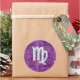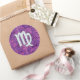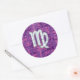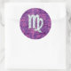 Pegatina Redonda Rótulo Virgo Zodiac en camuflaje digital rosado