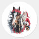 Pegatina Redonda Round Christmas Sticker Santa on paint horse