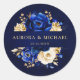 Pegatina Redonda Royal Blue Yellow Gold Metallal Floral Boda Cla