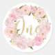 Pegatina Redonda Rubor Floral Primer cumpleaños Un Purpurina de oro