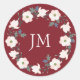 Pegatina Redonda Rubor Floral Wreath Burgundy Monograma Boda
