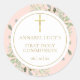 Con delicadas hojas de acuarela sobre un fondo rosa rubor y un elegante crucifijo dorado, este pegatina de la comunión sagrada de la moda puede ser personalizado con su información especial de eventos. Diseñado por Thisisnotme©