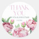 Pegatina Redonda Rubor Pink Peonies Watercolor Gracias